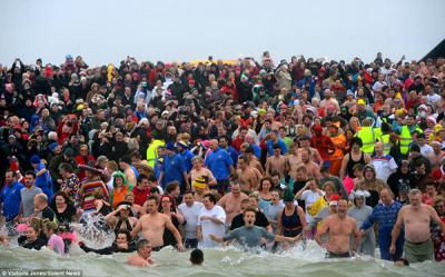 يحب البريطانيون الاحتفال بالمناسبات بطرق غير عادية ومبالغ فيها، فقرروا الاحتفال بالعام الجديد بالغطس في المياه المثلجة والابتعاد عن شرب الكحوليات.