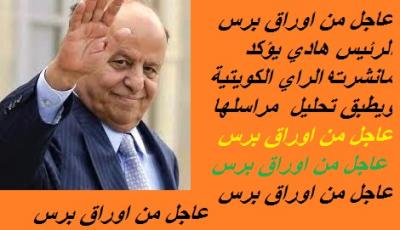 وكان موقع اوراق برس قد ارسل نسخة مما نشرته الراي الكويتة واوراق برس امس لاحد المقربين للرئيس هادي؟؟؟