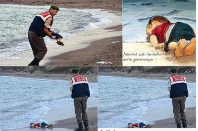 وتحت عنوان “الإنسانية تغرق” تشارك المغردون والمعلقون تبادل الصورة البشعة، لطفل الثالثة من العمر الذي قالت صحيفة الموندو الإسبانية إنه يُدعى ايلان كردي وانطلقت صرخات كثيرة أطلقها أشخاص عاديون وإعلاميون وسياسيون ومن كل الاختصاصات الأخرى. و”صرخت” مجلة لونوفال اوبسرفاتير على موقعها: “كل هذا من أجل هذا الجحيم؟” بقلم أحد صحافييها البارزين ماتيو كرواساندو، الذي قال “إن الصورة الفظيعة كفيلة وحدها بإقناع العالم وأوروبا، بضرورة المرور من طور الاكتفاء بالكلام إلى طور الفعل”، وأَضاف “الفعل يعني الآن وفوراً”.