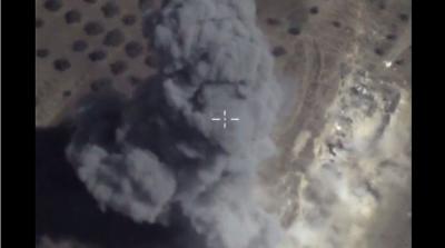 وفي منطقة بلدة سلمى بمحافظة اللاذقية وجهت قاذفة "سو-24م" ضربة بقنابل خارقة للتحصينات على مستودع لإرهابيي "داعش" مموه في المرتفعات، ونتيجة الانفجار الذي تلا الضربة تم تدمير الموقع بالكامل.