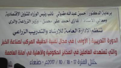بدأت بصنعاء اليوم ورشة تدريبية لتقنية الدقيق المركب لصناعة الخبز تنظمها الإدارة العام للإرشاد والتدريب الزراعي.