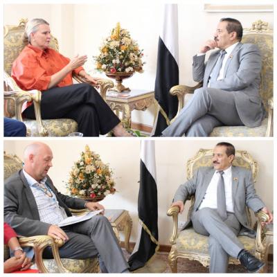 سلم المهندس هشام شرف عبدالله، وزير الخارجية، السيد/ أوكي لوتسما، الممثل المقيم للبرنامج الانمائي للأمم المتحدة بصنعاء، خطة تحديث وتطوير عمل ميناء الحديدة في ضوء الزيارة اللتي قام بها مهندسي ميناء روتردام "الهولندي" لصنعاء خلال الفترة الماضية ..