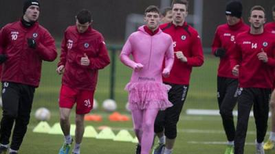 أثار لاعب اسكتلندي دهشة زملائه في فريق بارتيك ثيسل، وكذلك وسائل إعلام مختلفة، بعد ظهوره مرتدياً ملابس نسائية كاملة خلال التدريبات، قبل مباراة هامة للفريق أمام سلتيك حامل اللقب، ضمن الجولة 19 لمسابقة الدوري المحلي.