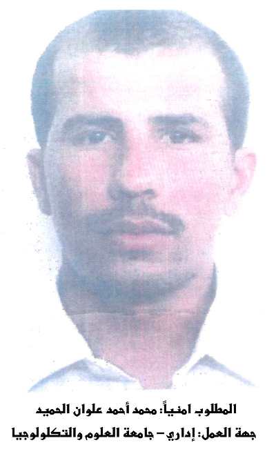 5- المطلوب أمنياً / محمد أحمد علوان الحميد _ إداري بجامعة العلوم والتكنولوجيا.