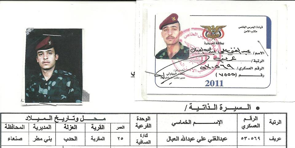 1- المطلوب أمنياً / محمد حزام الغادر _ اللواء الأول "حرس خاص".