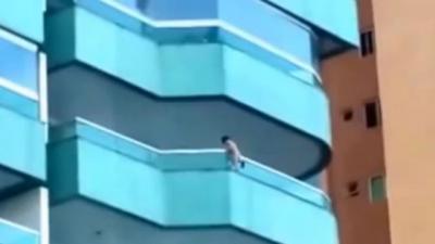 وأظهر مقطع الفيديو الطفل وهو معلق على حافة الشرفة، بينما تجمع حشد كبير من الناس وهم يصرخون طلباً لإنقاذه، فيما تمكن عدد منهم من الصعود ودخول الشقة والامساك بالطفل، وفقا للمرصد.
