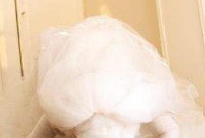 وظهر عليها الضيق الشديد وهي ما زالت مرتدية لفستان الزفاف وأخذت تجلب التحف