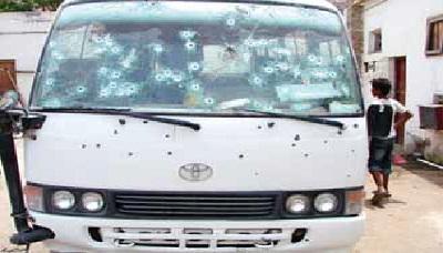 العميد الدكتور مصعب الصوفي مدير عام الشرطة في محافظة عدن قال في تصريح لـ"الثورة" أن ستة أشخاص بينهم امرأتان استشهدوا و أصيب أربعة عشر آخرون بجروح خمسة منهم في حالة حرجة في جريمة إرهابية بشعة نفذها مسلحون ينتمون لتنظيم القاعدة الإرهابي وكانوا يستقلون سيارة (إيكو صغيرة) اعترضت باص "كوستر" أثناء مروره بحي السيلة بمديرية الشيخ عثمان .