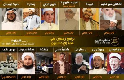 وحرصت إدارة قناة "الإرث النبوي" في هذا الموسم على أن تقدم للمشاهد برامج متميزة، بالإضافة إلى درسي الفجر والعصر للداعية عمر بن حفيظ، هناك العديد من البرامج الجديرة بالمشاهدة أبرزها برنامج "بصائر" الذي يعود جزئه الثاني بعد النجاح الذي حققه في الموسم الأول، ويتميز في هذا العام بطرح أعمق وعرض أجمل، و يقدمه الإعلامي أبوبكر الحبشي يستعرض فيه العديد من القضايا مع الداعية الإسلامي الحبيب محمد السقاف ويعرض كل يوم الساعة السادسة مساء، وبرنامج "رب لترضى" الذي يقدمه فضيلة الإمام العلامة الدكتور علي جمعة عضو هيئة كبار علماء الأزهر الشريف ويعرض كل يوم الساعة الثامنة والنصف مساء، وفي الساعة السابعة والنصف مساء يكون مشاهدي الإرث النبوي على موعد مع الإمام الشهيد محمد البوطي في آخر البرامج التي تم تصويرها قبل استشهاده، وهو برنامج قضايا الساعة " مع البوطي"، فيما يعود المفكر الإسلامي الحبيب أبوبكر العدني بن علي المشهور في برنامجه المرصد النبوي في جزئه الثاني مواصلة للنجاح الكبير الذي حققه في الموسم الأول، ويعرض مساء كل جمعة الساعة الرابعة والنصف مساء.