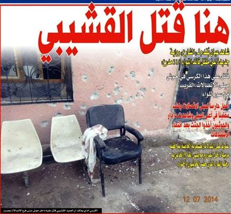قالت صحيفة الشارع وفقاً لشاهد عيان كان متواجداً لحظة مقتل اللواء القشيبي ان الاخير قٌتل على كرسي في حوش مبنى الاتصالات القريب من سور اللواء وقال الشاهد انه يعمل حارساً لمبنى الاتصالات وكان مختبئ في اعلى المبنى وشاهد مادار وان الحوثيون اخذوا الجثث بعد انتهاء الاشتباكات وأضاف انه عثرعلى البدلات العسكرية الخاصة بمرافقي القشيبي مرمية داخل البدروم مع كيس العلاج الخاص به وختم اللواء الذي حضر الحوثيون واخذوه