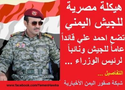 مصر تشرط هيكلة الجيش اليمني على ان يكون واحمد علي صالح قائداً عاماً للقوات المسلحة والأمن .